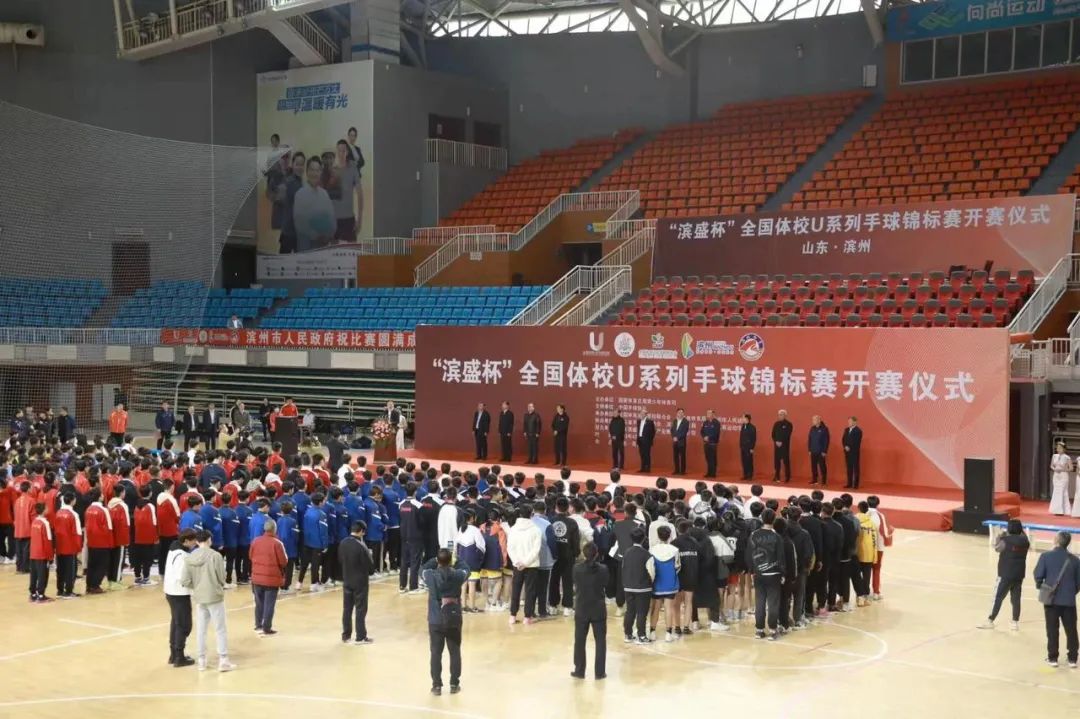 4月22日,由山東濱盛文旅體育產(chǎn)業(yè)集團有限公司冠名的“濱盛杯”全國體校U系列手球錦標賽在濱州市奧林匹克體育館拉開帷幕。全國體育運動學校聯(lián)合會理事長韋迪,國家體育總局青少年體育司原司長王立偉,全國體育運動學校聯(lián)合會常務副理事長、中奧體育發(fā)展集團總裁劉亞群,省政協(xié)常委、教科衛(wèi)體委員會副主任李政出席開幕式,市委常委、副市長屈躍寬,山東濱盛文旅體育產(chǎn)業(yè)集團黨委副書記、董事長谷春生出席并致辭。