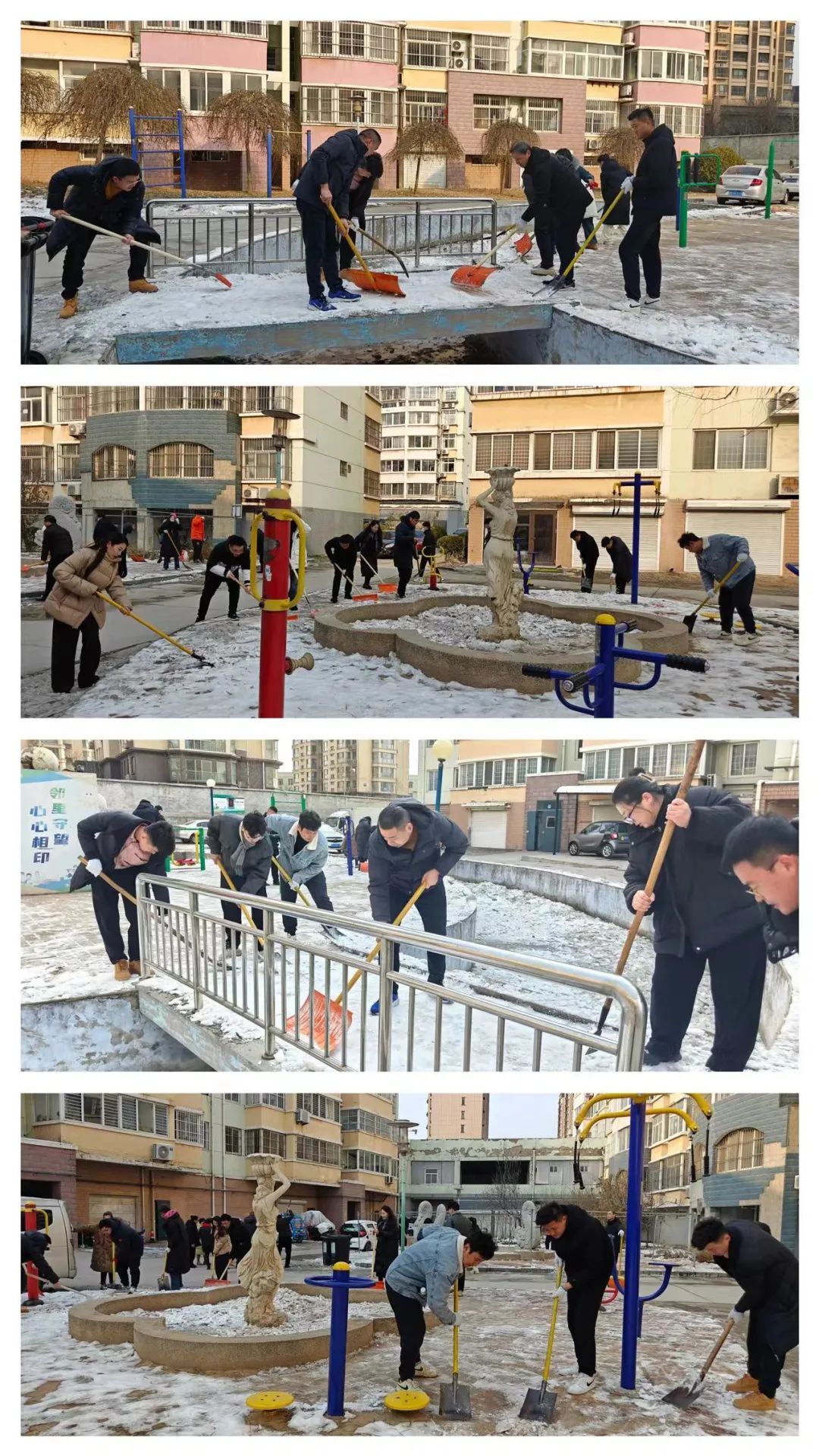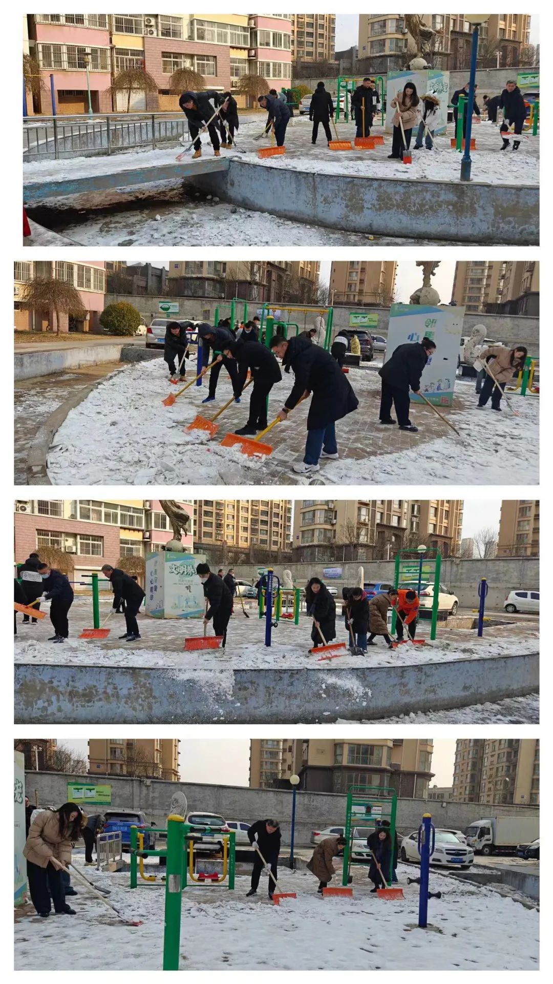活動中,志愿者們不畏嚴(yán)寒,齊齊上陣,分工有序,手持鏟雪工具,清理社區(qū)活動廣場上的冰雪,大家齊心協(xié)力,配合默契,干得熱火朝天。