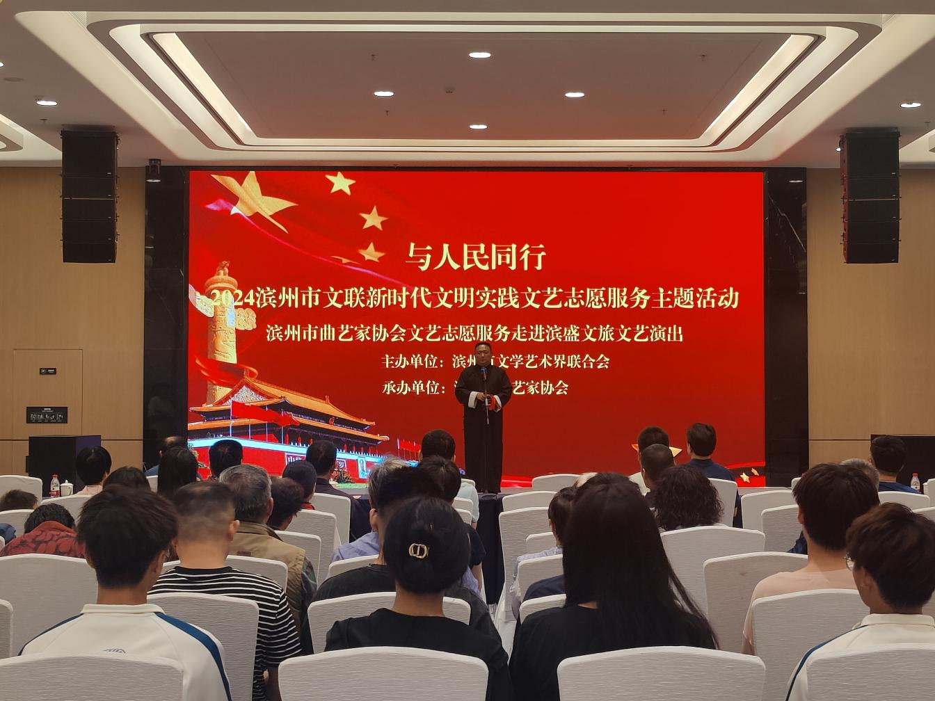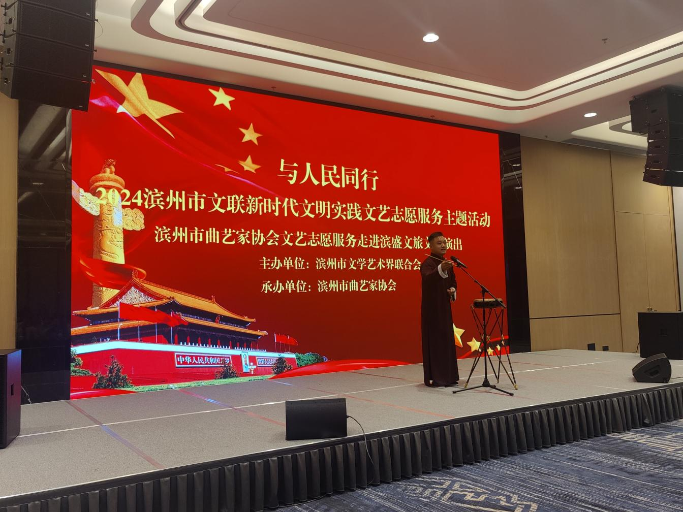 5月23日晚,2024濱州市文聯(lián)新時(shí)代文明實(shí)踐文藝志愿服務(wù)主題活動(dòng)暨走進(jìn)濱盛文旅文藝演出在舜和國(guó)際酒店女英廳舉行。本次活動(dòng)由濱州市文學(xué)藝術(shù)界聯(lián)合會(huì)主辦,濱州市曲藝家協(xié)會(huì)、山東濱盛文旅體育產(chǎn)業(yè)集團(tuán)有限公司協(xié)辦。