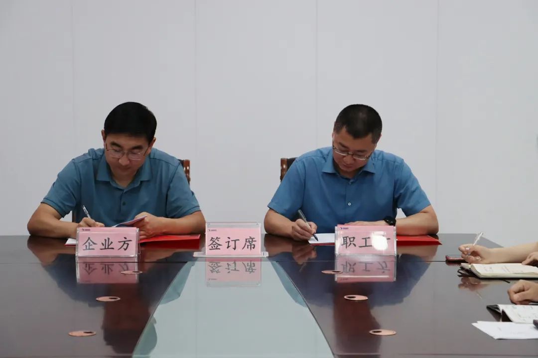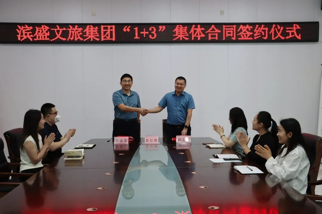 為構(gòu)建和諧穩(wěn)定的勞動關(guān)系,充分發(fā)揮工會在企業(yè)健康發(fā)展中的監(jiān)督作用,切實維護勞動者的合法權(quán)益。5月31日, 濱盛文旅集團工會舉行“1+3”集體合同簽約儀式,集團黨委委員、董事、副總經(jīng)理、工會主席吳振濤,黨委委員、副總經(jīng)理王棟出席簽約儀式。